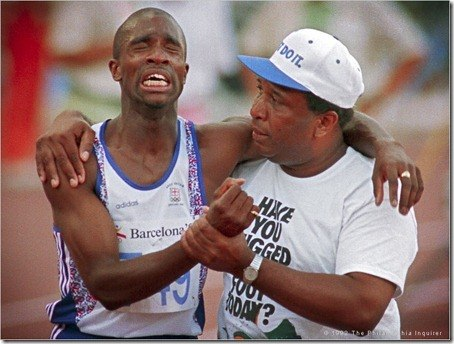 В 1992 году в Барселоне во время забега на 400 метров Дерек Редмонд был так близок к осуществлению мечты своей жизни – золотой олимпийской медали. Он был почти у финишной черты, когда вдруг почувствовал резкую боль в правой ноге. Бегун упал на дорожку с разорванным сухожилием.