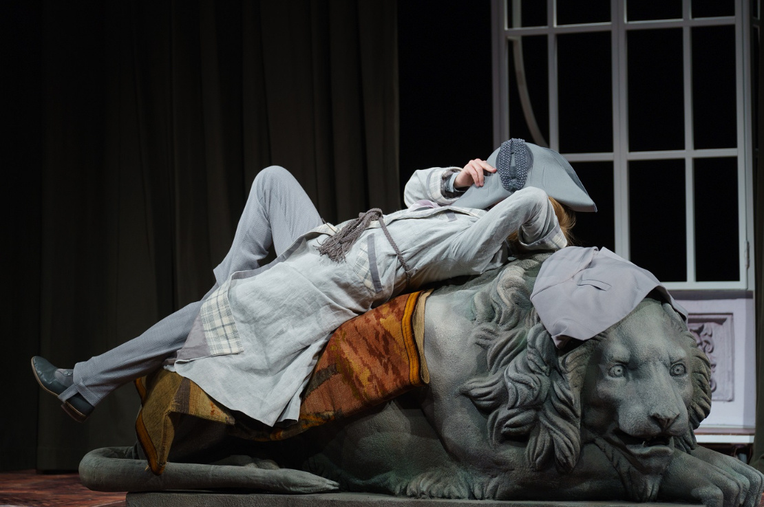 «Женитьба» - спектакль, на который идешь смеяться. Потому что Гоголь, потому что гениально и на века. - Во сколько встретимся? - Давай заранее! Театр начинается с вешалки и буфета. Надо прочувствовать обстановку. И вот это вот все. Идешь смеяться, отбросив ужас контекста, без «стыдно за радоваться», как когда-то сказала Оля Аничкова. Идешь, намеренно оставив тревогу в гардеробе, чтобы погрузиться в вечные вопросы, но не про жизнь и смерть, а про глупость и жадность, и про женитьбу, конечно. «Совершенно Невероятное Событие (Женитьба в 2‑х действиях)» в Театре «Мастерская Петра Фоменко». На сцене лежит большой каменный лев. - Он символизирует Российскую империю? - Конкретнее – Петербург. Мой друг Халилов перечитал пьесу перед тем, как идти на спектакль, и сказал «несерьезная пьеса – никто не умер». Да и прекрасно, что никто! хотя бы тут. Но Халилов шекспиролюб и макбетоман. Но ничего, смеялся у Гоголя, как миленький. Совершенно непонятно, как шутки, написанные почти двести лет