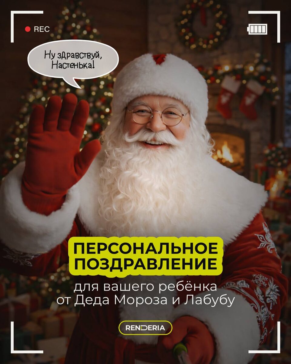 🎄 Именное новогоднее поздравление для вашего ребёнка – с теплом, магией, Дедом Морозом и любимым Лабубу ✨ Всего 3 шага: 👉 зайдите в Telegram-бот @renderia_ny_bot 👉 введите имя и возраст 👉 получите персональное поздравление Поделитесь с другими родителями – пусть Новый год станет ещё добрее!