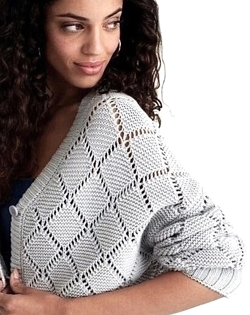 Один из ажурных узоров, которые вяжутся быстро и просто, благодаря крупным ромбам.