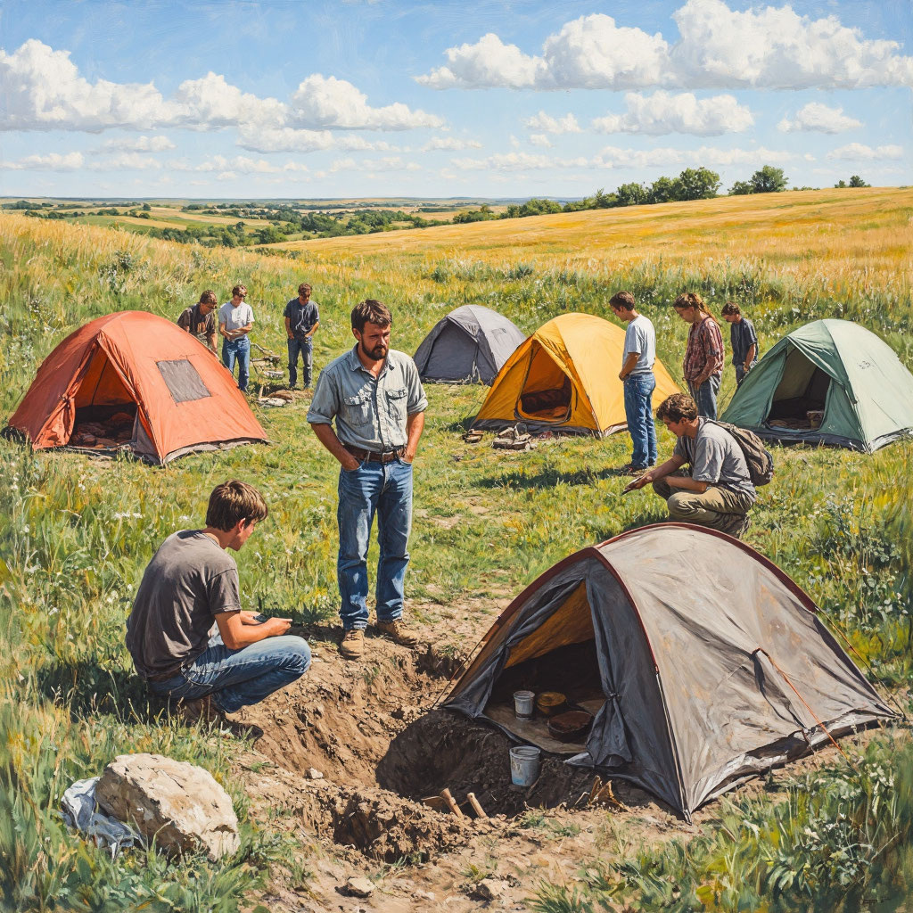 На окраине хутора был разбит палаточный лагерь, которым командовал преподаватель студентов, археолог со стажем Павел Викторович.