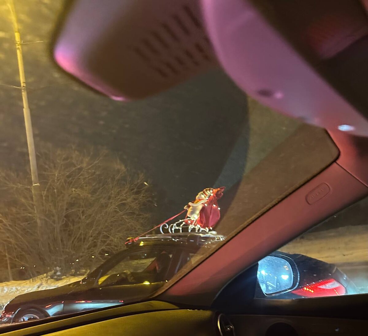🚘Стою на светофоре — а рядом машина с Дедом Морозом на крыше