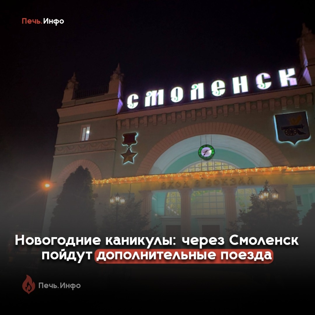 С 25 декабря 2024 года по 14 января 2025 года назначено 12 дополнительных поездов дальнего следования. Они свяжут Смоленск с Москвой, Минском, Брестом и Полоцком.