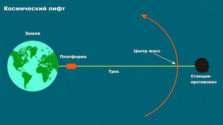 В конце XIX века возникла довольно необычная идея — создать космический лифт.. Предложил её, кстати, русский учёный Константин Циолковский. Понятно, что эта идея тогда была фантастикой (до запусков тех же спутников оставалось полвека). Но сейчас учёные хотя бы примерно понимают, как её реализовать. А зачем он вообще нужен, если есть ракеты? Как минимум для того, чтобы отправлять на нём грузы на орбиту. Это было бы намного выгоднее, чем ракетами. Например, сегодня стоимость доставки 1 килограмма груза на МКС составляет примерно $20000. А на космическом лифте доставка килограмма груза обходилась бы примерно в 100 раз дешевле. И тут возникает другой вопрос: если понятно, как его сделать, и если это такая выгодная штуковина, почему до сих пор его никто не создал? Нужно начать с того, что вообще представляет собой такое устройство. От Земли по тросу движется подъемник ("кабина лифта" простыми словами) в сторону геостационарной орбиты (высота около 36000 километров), где обычно находятся спу
