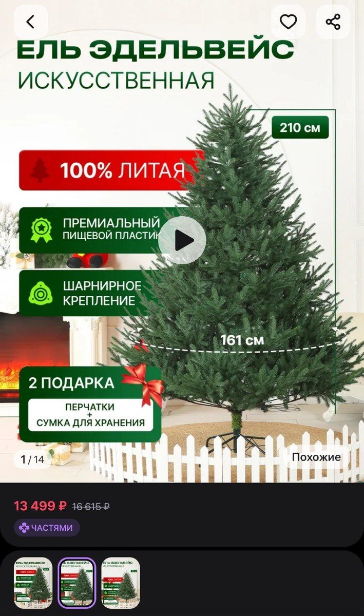 Елка искусственная литая новогодняя Эдельвейс 210 см. Гранд Елка