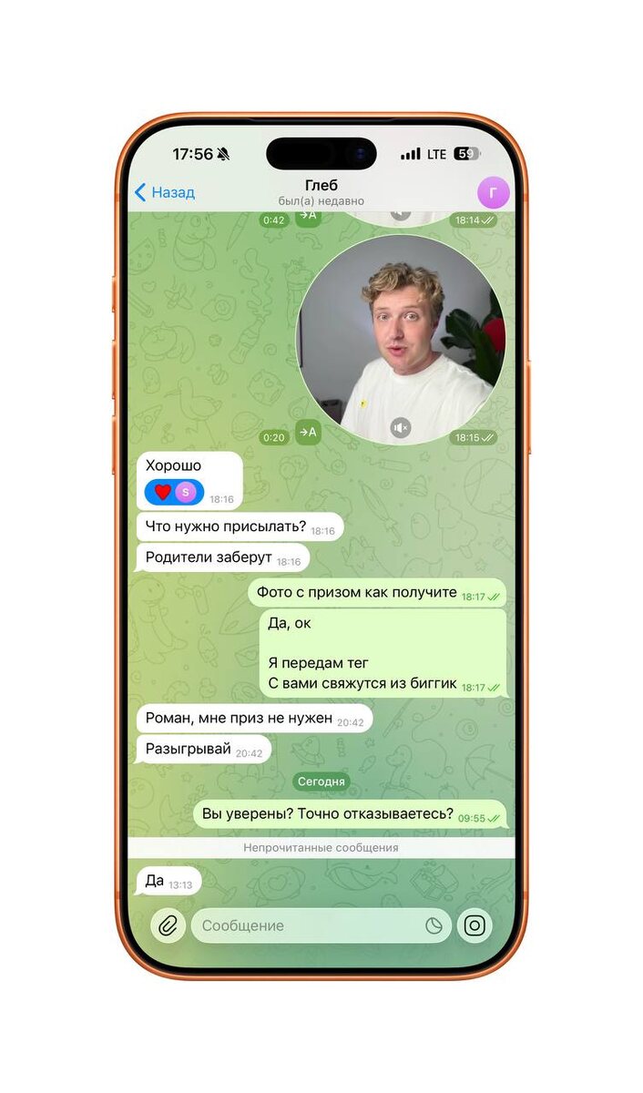 И такое бывает! Парень выиграл AirPods Pro 3 и отказался от них. Выбираем доп победителя! Результаты как всегда в посте с кнопкой https://t.me/Romancev768/14919 Напоминаю. Победителю пишу лично и отправляю кружок. Остальных шлите лесом.