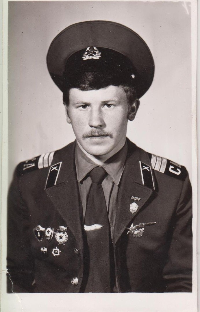 обр. 1973 года. Сержант проходил службу в БОУП при Киевском высшем военном авиационном инженерном училище. У сержанта помимо стандартного набора знаков кустарно изготовленный знак ВЛКСМ и сувенирный знак с символикой города Киева. Источник: отсканированная фотография из коллекции подписчика нашего канала. #фото #сержант #артилерия #знак #фалеристика #Советская_армия