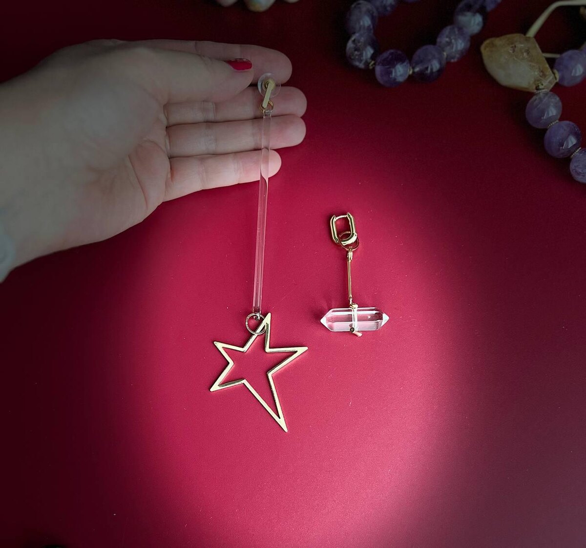 Предметы первой необходимости в сегодняшнем мире: комплект из моносерьги со звездой и хрустальным шаром и хрустальным кристаллом, которые