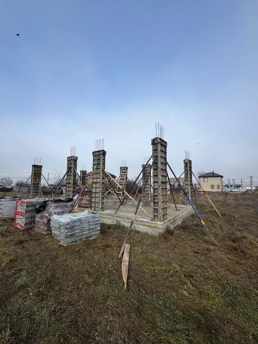 Приступили к строительству очередного дома в х. Песчаный, срок возведения до 1 мая 2026 года, дом в 2-х этажном исполнении в облицовочном кирпиче, кровля из металлочерепицы вальмовая , начало положено ✅
