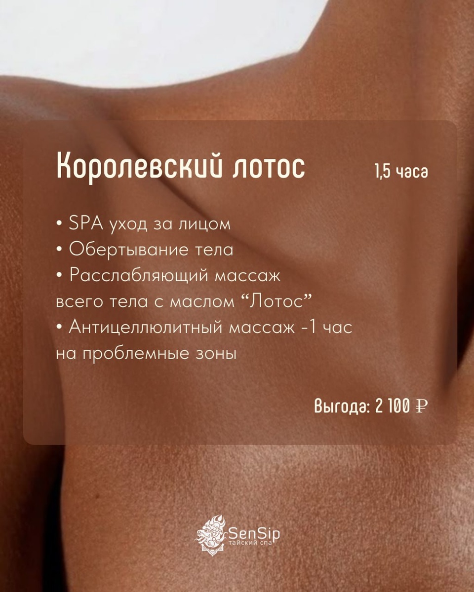 ✨ Новый год уже совсем близко, а впереди – вечер, когда хочется выглядеть особенно. Самое время подумать не только над праздничным образом, но и подобрать ритуал, после которого засияют кожа, тело и взгляд. 💫 Мы собрали ТОП СПА – программ, которые помогут встретить новогоднюю ночь в своём лучшем состоянии! Выбирайте свой идеальный способ засиять вместе с нами: 🍧Программа Секрет Афродиты 🍧Акция Сочная Папайя 🍧Акция Королевский лотос 🍧Программа Секрет стройности 🍧Акция Perfect body Pro 🍧Акция Лифтинговый массаж лица (только в салоне – Олимпийский)