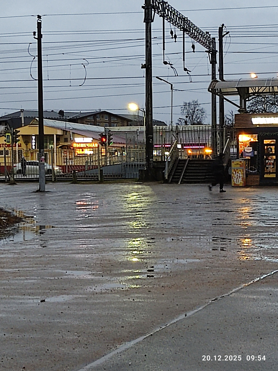 Вот и ещё один зимний дождливый день. Дождь шёл уже с утра. Вышли в темноте, редкий прохожий спешил под дождём, ну а мы спешили на электричку.