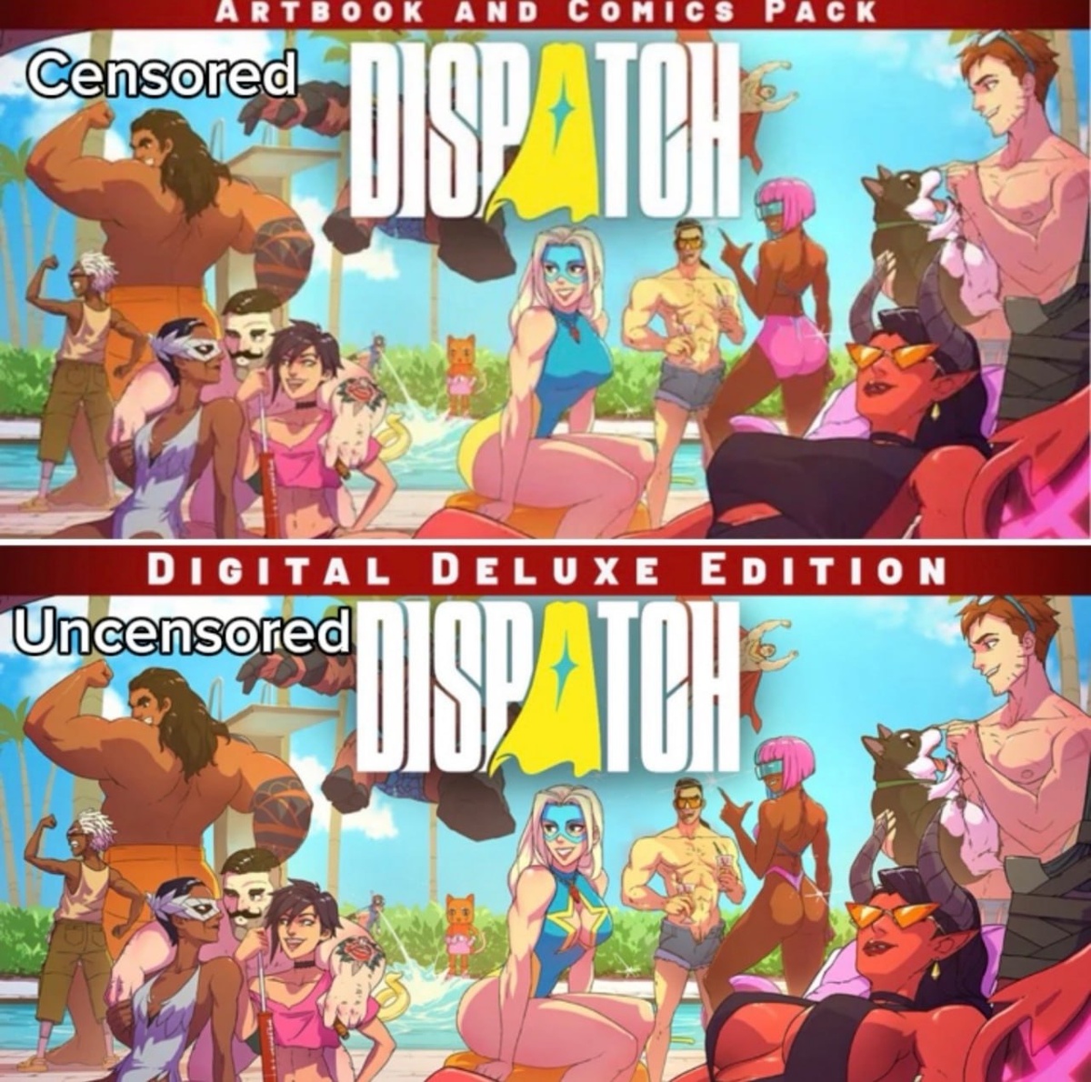 Nintendo подвергла цензуре обложку Deluxe-издания Dispatch на Switch. Некоторые части тела персонажей теперь «закрыты» дополнительным «слоем» одежды. Изменят ли фрагмент с Невидивой в начале четвёртого эпизода в Switch-версии игры, пока неясно. #игры@inyoueyes