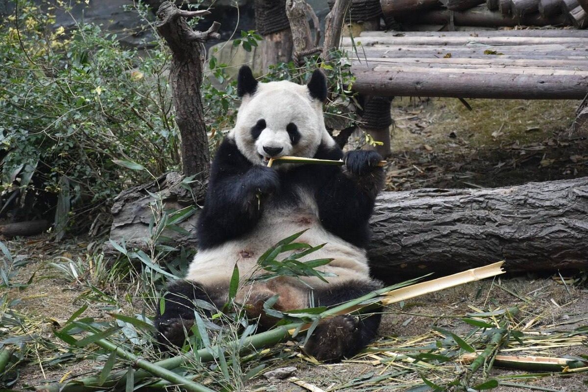 Жители горных бамбуковых лесов, они съедают в день до 30 кг листьев и стеблей бамбука