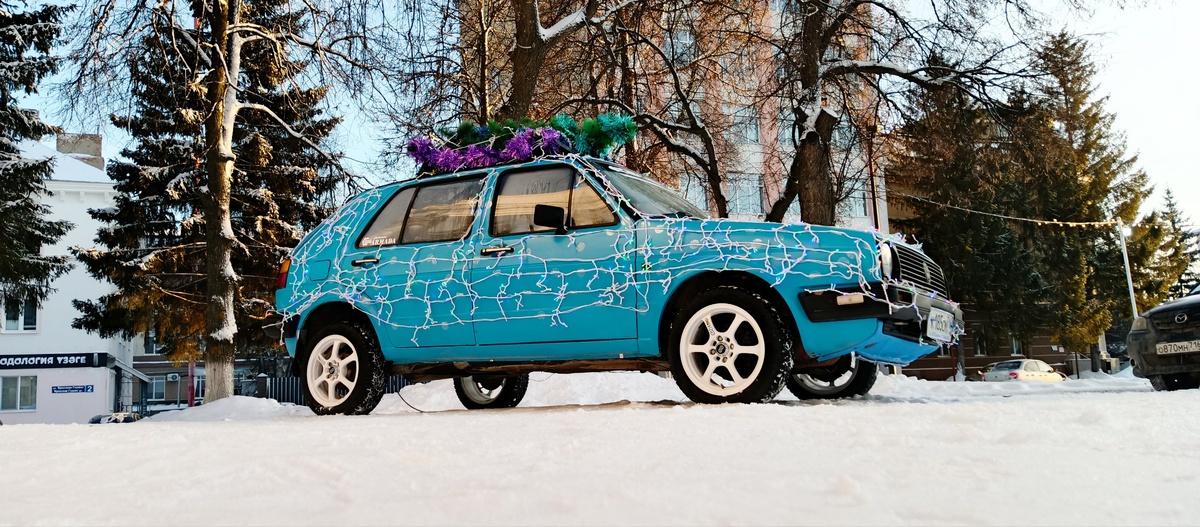 Интересную машинку я увидел сегодня. Праздник везде 😎🎄