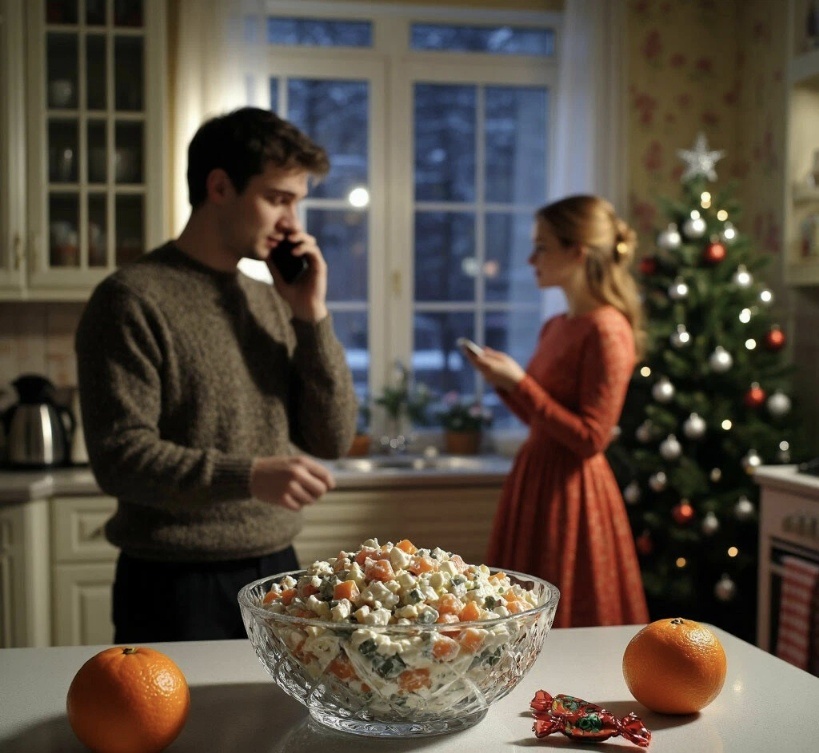 Я с любовью раскладывала на столе салаты. «Оливье» в моем глубоком хрустальном блюде, селедка под шубой, аккуратно украшенная тертым желтком и зеленью. Рядом стояли тарелочки с нарезкой и сыром. Стол был скромным, но душевным, рассчитанным на троих. Маша в новой бархатной платье цвета вишни бегала по гостиной, рассматривая подарки под елкой, и ее смех был самым лучшим звуком этого утра.