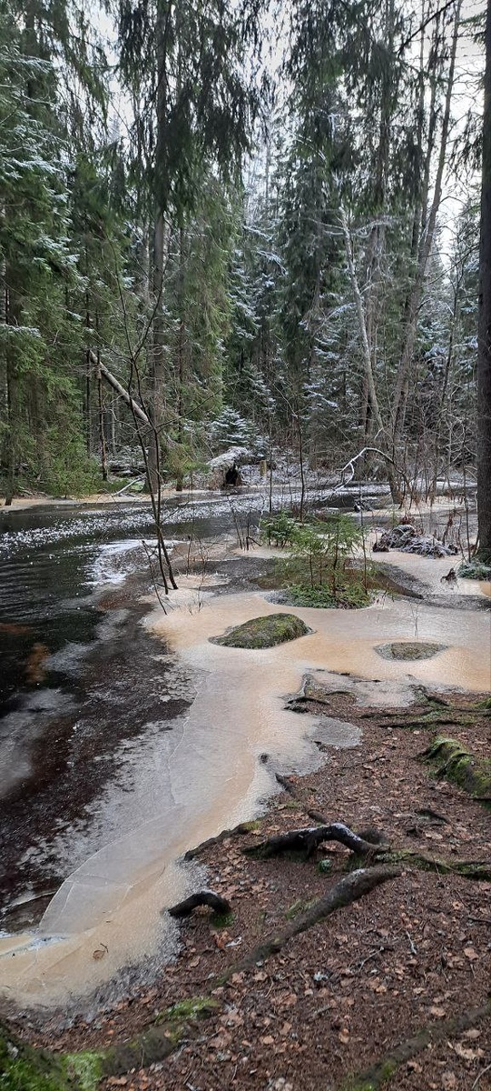 ЧЕРНАЯ РЕЧКА. Сегодня в лесу сыро, темно и грязно. На улице +3°С. А вот неделю назад был мороз и совершенно другая картина в лесу. Ходили мы к речке, которая протекает за нашим посёлком в лесу. Знаем, что в нашем лесу водятся лоси и при непонятном треске - первое что пришло на ум, что это мог быть лось Но такие странные звуки были ото льда, который трещал. А ещё говорят, что зимой тут можно поймать щуку. Не проверяли 😄😄😄 #лес #эстетика #чернаяречка #прогулки