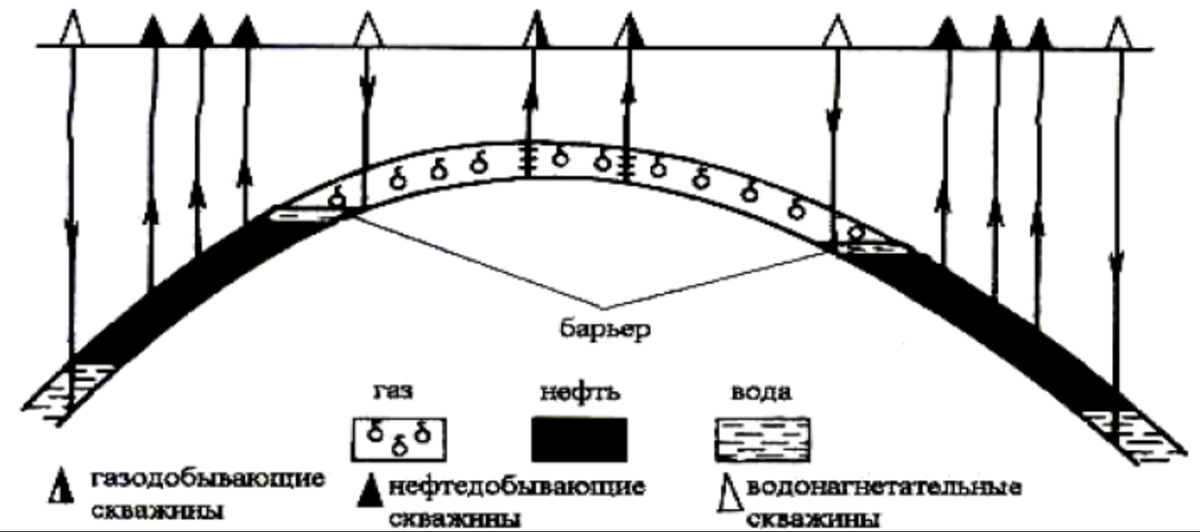 Барьерное заводнение залежи — разновидность внутриконтурного заводнения, применяемая при разработке нефтегазовых или нефтегазоконденсатных залежей пластового типа. Цель — изолировать газовую (газоконденсатную) часть залежи от нефтяной. Нагнетательные скважины расположен на внутреннем контуре газо-нефтяного контакта. Воздействие этих скважин не позволяет газу прорваться в нефтяную часть, что может вызвать загазованность добывающих нефтяных скважин и приведет к потерям запасов нефти за счет перетекания нефтяных запасов в газовую часть. Барьерное заводнение позволяет одновременно эксплуатировать нефтяную и газовую/газоконденсатную часть залежи. Головное заводнение - еще один из видов сводового заводнения. В данном случае нагнетательные скважины располагаются в верхней части залежей, приуроченных к тектоническим или литологическим экранам.