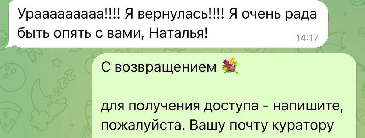 ) Супер-цена на годовой абонемент в клуб и решение пойти с нами вдолгую новичков пугает🤪 Моему ассистенту пришло много количество сообщений типа «мне очень интересны модули из клубной программы, но я пока не решаюсь пойти на целый год и буду заходить только на те модули, которые мне наиболее актуальны» ✅Да, девочки, это совершенно нормально, если вы пока не очень мне доверяете, не совсем со мной знакомы, не понимаете, надо вам или не надо на целый год связываться со мной и с моим проектом — это естественно, вы просто будете потом заходить на отдельные модули по обычной цене. Но вот возможность тем, кто в клубе был, а потом выбыл по определенным причинам, вернуться, потому что 50% вышедших в свое время из клуба возвращаются, причем возвращаются самыми яркими эмоциями и теплыми словами. Пример — на этом скрине🔼 ⸻ ‼️ Как лечиться с помощью еды и вернуть себе гормональный баланс, рассказала здесь ➡️ https://dzen.ru/media/natalia_promolodost/gormonalnaia-eda-3-bazovyh-principa-natu