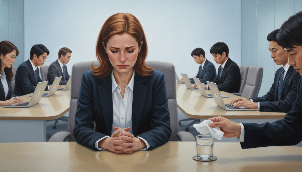 Слёзы на работе — это социальная катастрофа. Хуже, чем конфликт, хуже, чем ошибка в отчёте. Потому что никто не знает протокола.