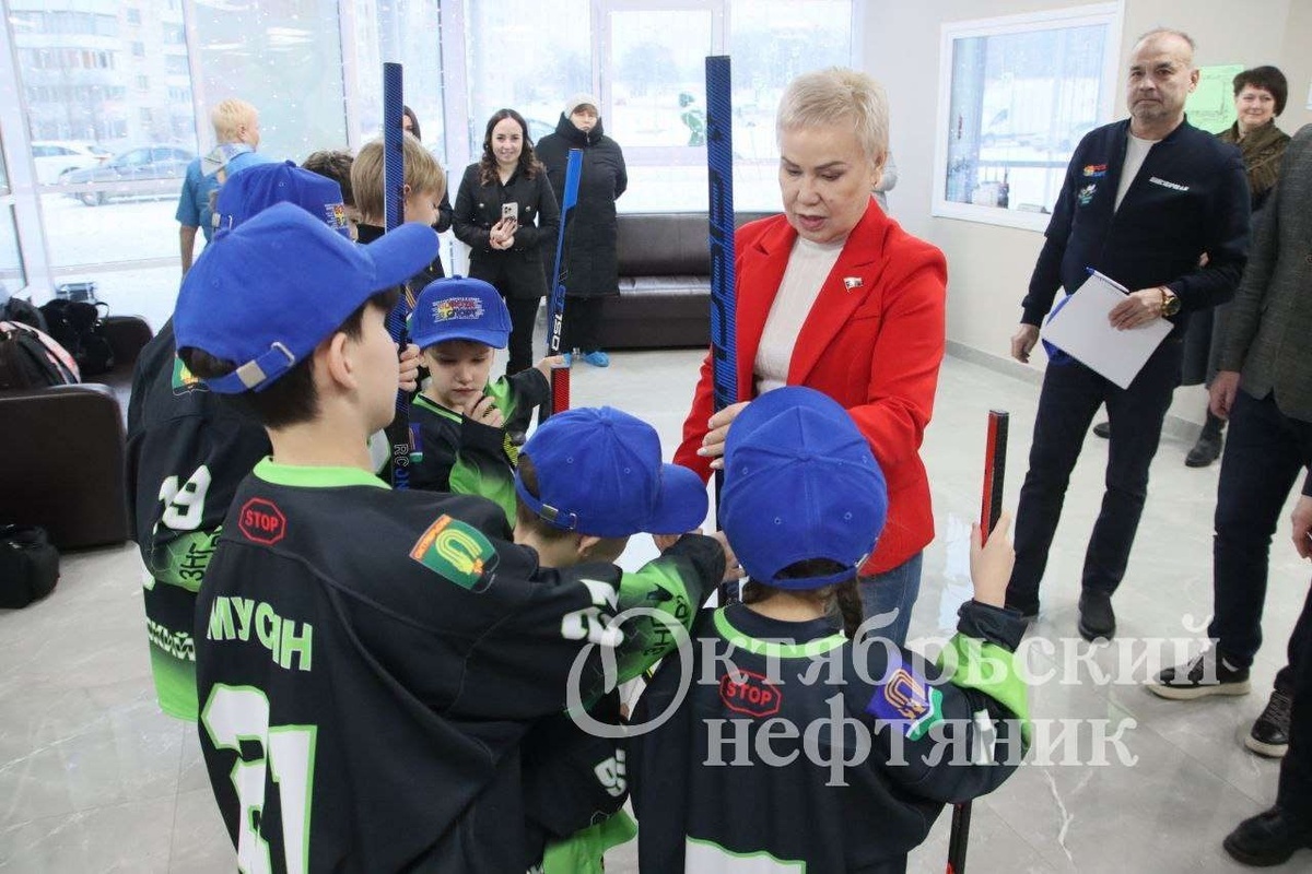 Юным хоккеистам Октябрьского подарили клюшки и комплект ворот