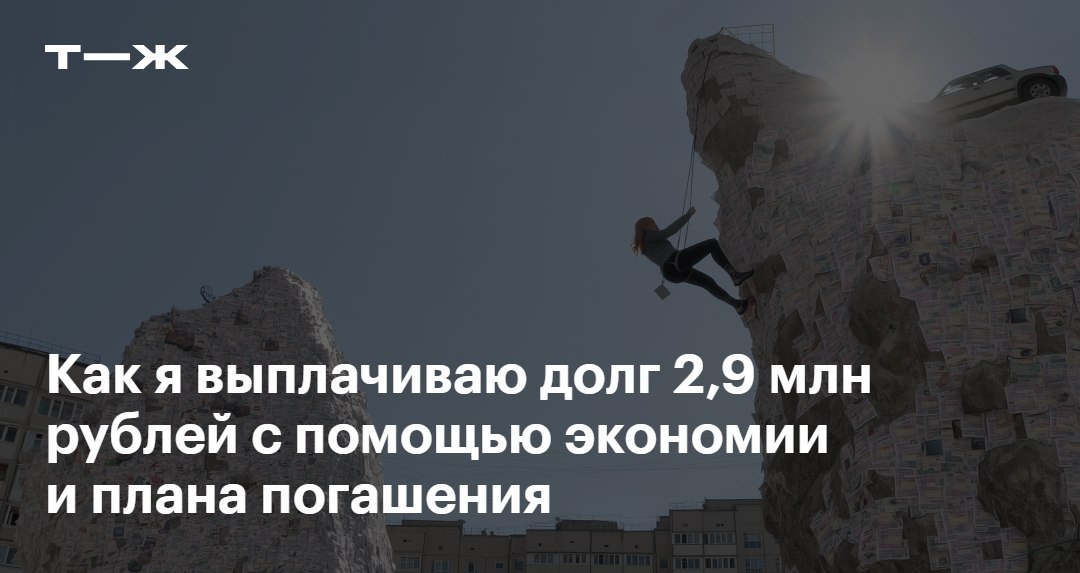 ₽. Плюс ипотека — 1 880 000 ₽. Вроде по отдельности цифры ежемесячных платежей небольшие: тут 40 000 ₽, там 50 000 ₽. А вместе сумма огромная. В 2013 году Екатерина развелась и осталась с трехлетней дочерью и зарплатой в 13 000 ₽. Чтобы выжить, она стала брать кредиты. Сейчас ей 37 лет и она получает около 170 000 ₽ в месяц — но долги никуда не делись, и героиня решила взяться за ум. Вот что она сделала: 🔹начала вести учет доходов и расходов; 🔸стала меньше тратить на продукты; 🔺отказалась от крупных эмоциональных трат; 🟩расписала план погашения долга. В результате за полгода героиня смогла сократить долги почти на полмиллиона. Подробно о том, как ей это удалось: https://t-j.ru/tg/settle-debts-more-3-mln-in-4-years/