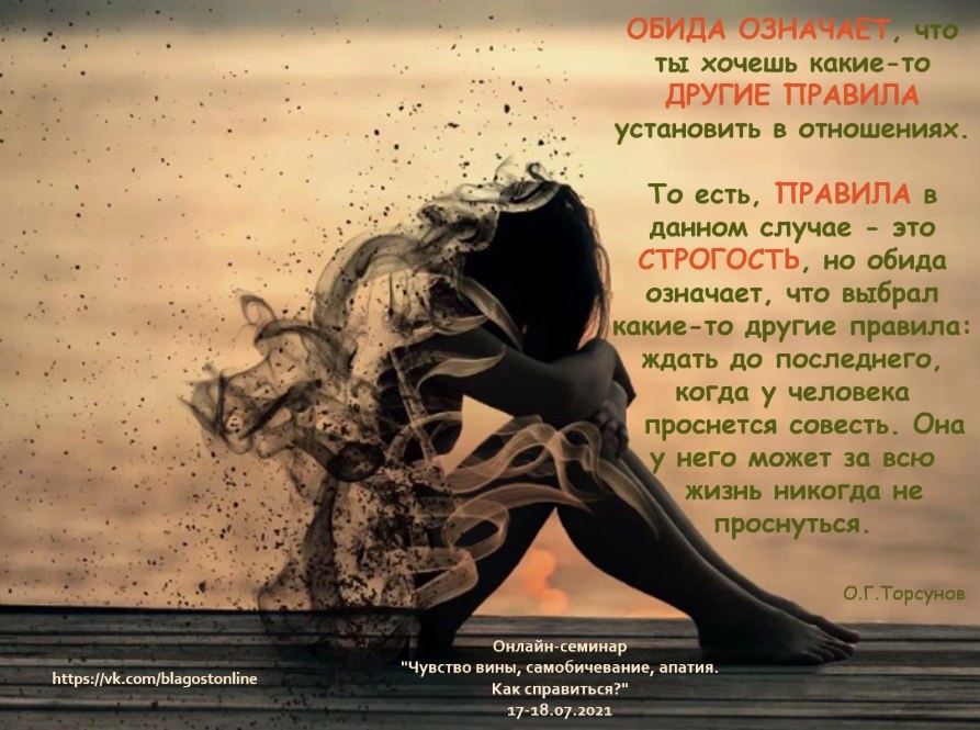 То есть, ПРАВИЛА в данном случае - это СТРОГОСТЬ, но обида означает, что выбрал какие-то другие правила: ждать до последнего, когда у человека проснется совесть. Она у него может за всю жизнь никогда не проснуться.