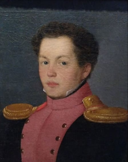 Здесь все желтее и приборный цвет мундира портретируемого, так сказать, «менее малиновый», ближе к красному. Впрочем, с точки зрения подтверждения принадлежности мундира персонажа Литовскому уланскому полку нам это ничего не дает, это все равно не «литовский» мундир.