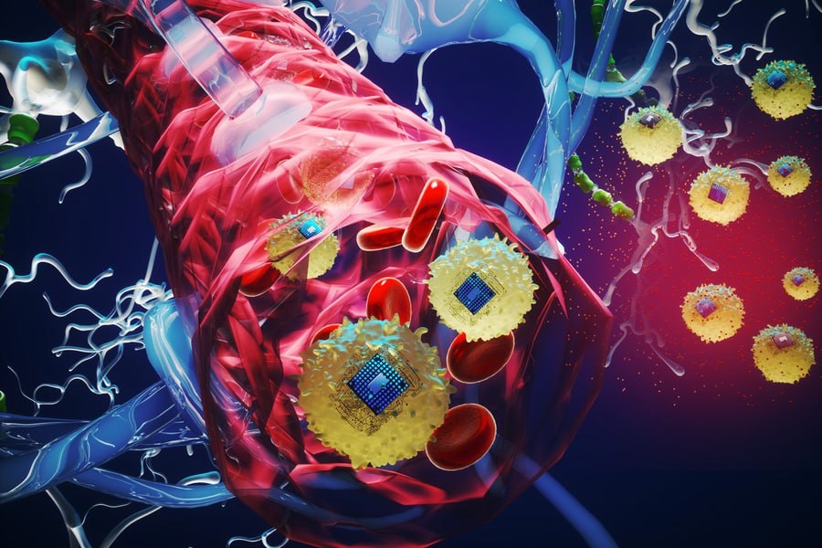 Исследователи MIT создали микроскопические беспроводные электронные устройства, которые путешествуют по крови и имплантируются в целевые области мозга, где обеспечивают электрическую стимуляцию. "Команда работает над циркулятроникой более шести лет. Электронные устройства, каждое примерно в миллиард раз меньше зерна риса, состоят из слоев органического полупроводникового полимера, зажатых между металлическими слоями для создания электронной гетероструктуры." Это звучит точно так же, как то, что исследователи нашли в вакцинах от Covid. Самосборная нанотехнология.