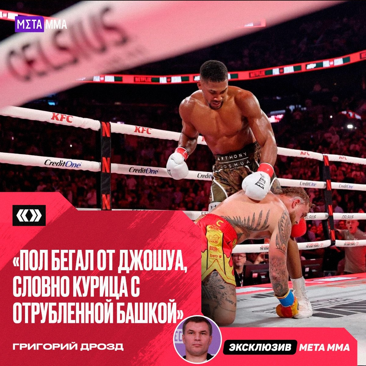 Экс-чемпион мира по версии WBC в первом тяжёлом весе Григорий Дрозд в интервью MMA.Metaratings.ru прокомментировал поединок между Энтони Джошуа и Джейком Полом, отвергнув разговоры о возможной постановке. По словам Дрозда, бой выглядел логично и естественно с учётом разницы в габаритах и классе: «Я не заметил элементов договорного боя. Пол меньше, быстрее и легче, а Джошуа тяжелее его примерно на 30 килограммов. Пока у Джейка были силы, он судорожно бегал по рингу, в испуге уходя от ударов». Эксперт отметил, что Джошуа действовал хладнокровно и ждал своего момента: «Энтони не суетился — он ждал, пока Пол полностью выдохнется. А Джейк носился из угла в угол, словно курица с отрубленной башкой. Выглядело это местами комично». Дрозд также подчеркнул психологический момент: «У Пола был страх в глазах. Он понимал, что в лице Джошуа есть реальная угроза для его жизни и здоровья». ❓ Согласны с оценкой Дрозда? 🔥 — Да, всё выглядело именно так 🤔 — Нет, бой был другим 👊 Подпишись на