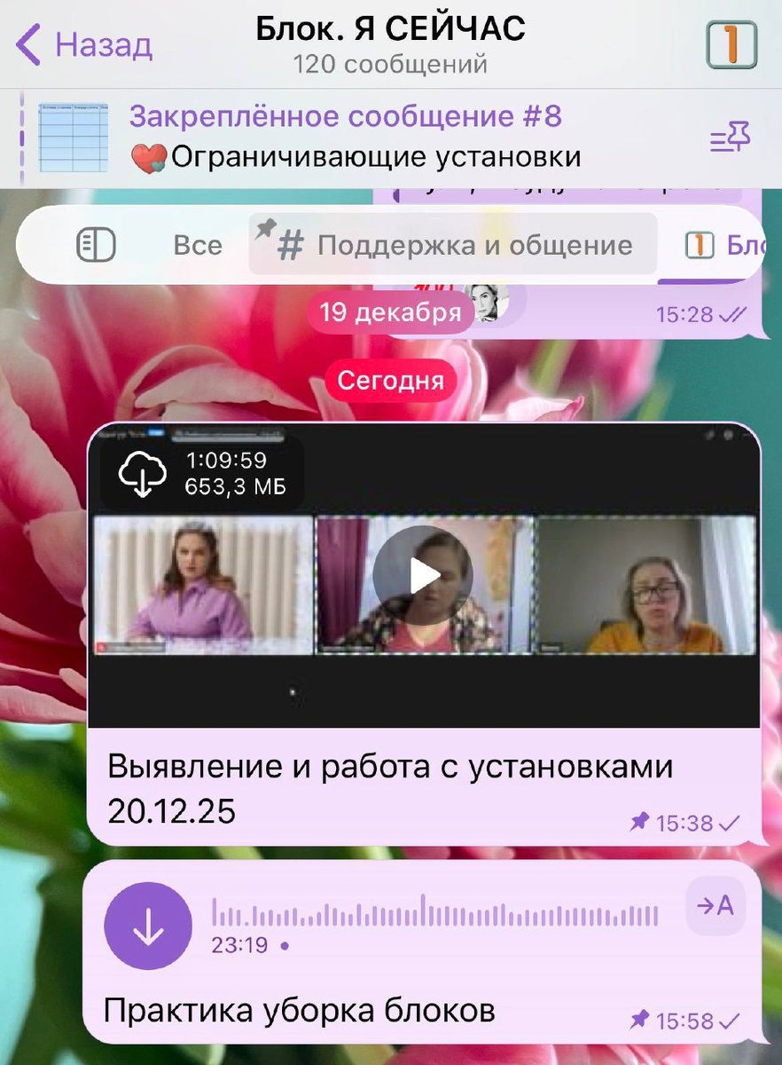 Сегодня в своей группе https://dzen.ru/media/magic_therapy/a-esce-dlia-teh-kto-idet-so-mnoi-v-gruppu-ia-k-novomu-godu-gotovliu-podarok-6933eeb0b6dc024aa7fb105c провели важный эфир по выявлению блокирующих установок. И дала практику для их проработки. Причем, сделали, как на эфире, так и в записи участники получили это упражнение. Если ты не попал в группу, но хочешь, напиши в комментариях + и я напишу в личку о возможности вступления.