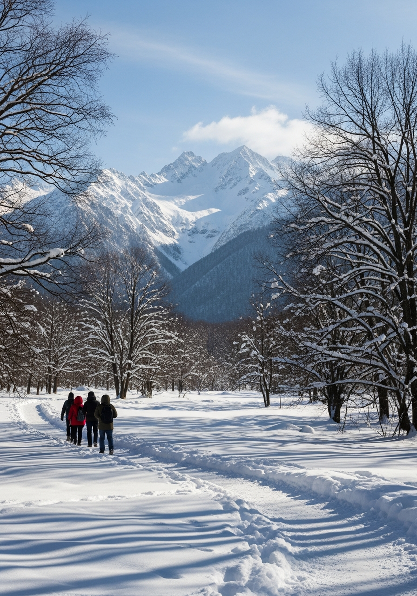 Горячие минеральные бассейны под открытым небом — идеальное место для отдыха в январе. Купание в тёплой воде на фоне заснеженных гор создаёт незабываемые впечатления.