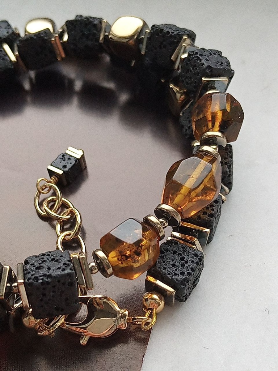 🤗 🖤Лава и свет💛 🖤Тьма вулкана. Свет Балтики💛 Современная, лаконичная интерпретация Янтаря. С текстурой, глубиной и светом. Колье из чёрных кубиков вулканической лавы — матовых, плотных, с рельефной фактурой, будто сохранившей память о земных глубинах. Среди них — три многогранника балтийского янтаря: их оттенок — тёплый коньячно-медовый, полупрозрачный, с живыми вкраплениями, как следы древнего света. Акценты из гематита в цвете античного золота мягко связывают композицию — не ярко, а сдержанно, с благородной глубиной. 🔹 Длина: 47 см + 4 см цепочка 🔹 Цена: 1990 ₽ Это украшение — не просто сочетание камней. Это диалог стихий: земли и солнца, тьмы и прозрачности, грубой фактуры и тёплого сияния. Если вы любите янтарь — здесь он как голос времени, облачённый в современную форму. Тёплый, но строгий. Древний, но актуальный. Это украшение для тех, кто сочетает природу и современный вкус. Все готовые изделия можно посмотреть ➡️ ТУТ Для заказа пишите в