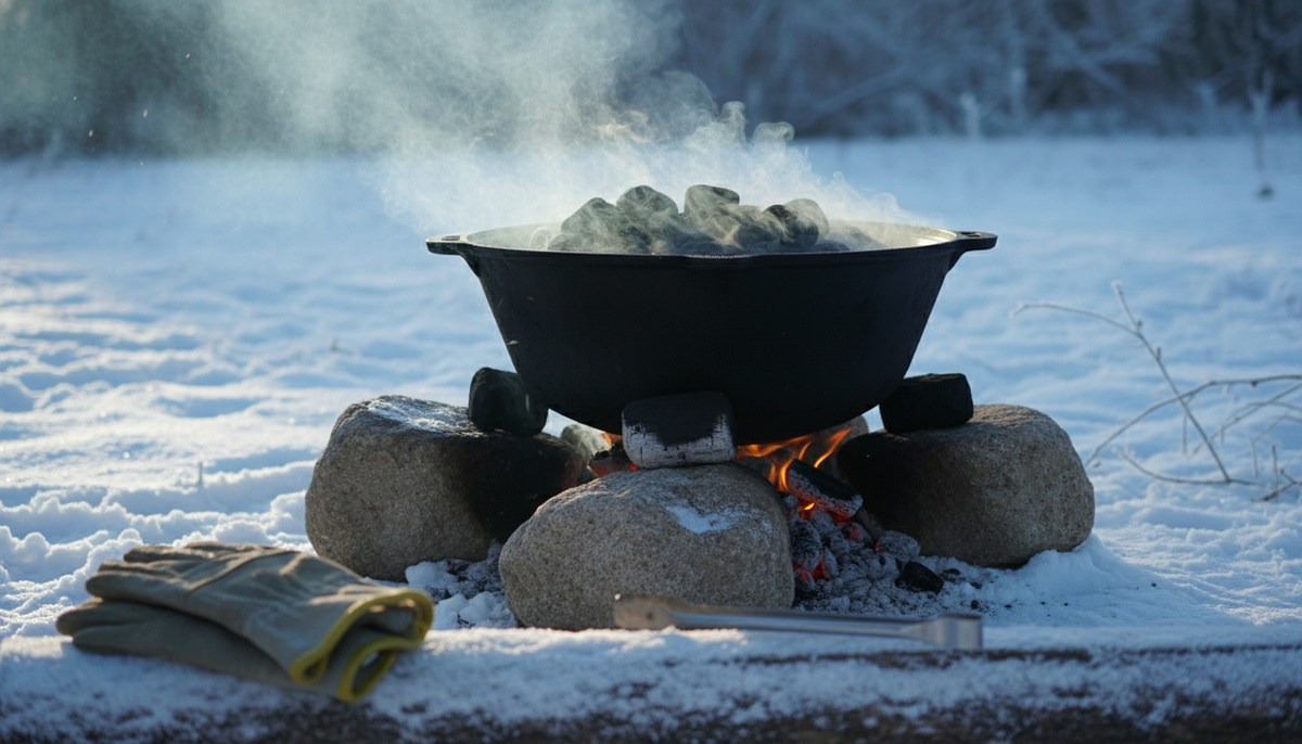 - Крышка‑аккумулятор. Толстая крышка с углями сверху превращает казан в печку: тепло идёт внутрь, а не в небо.