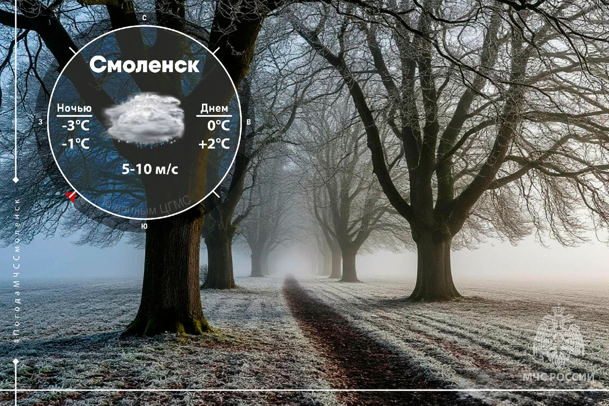 Завтра будет облачно, местами возможны небольшие осадки в виде мокрого снега, а днем – дождь. На территории области возможен туман, а ночью и утром местами образуется слабый гололед, на отдельных участках дорог – гололедица. Ветер юго-западный, 5-10 м/с.