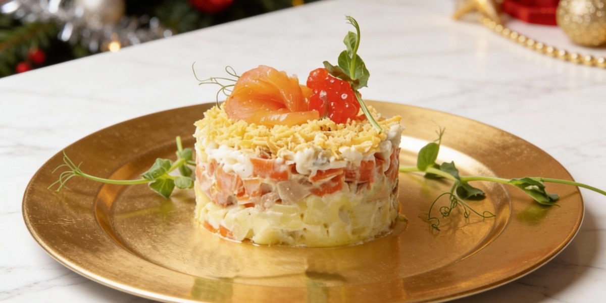 В новогодние дни хочется позволить себе чуть больше, чем обычно. И этот салат — как раз из таких. Нежная слабосолёная красная рыба, мягкие овощи, воздушные яйца и финальный штрих в виде икры. Он выглядит дорого, подаётся красиво и сразу создаёт ощущение праздника. Название говорит само за себя: в разрезе салат напоминает переливы северного сияния — светлый, аккуратный, очень нарядный. Отлично смотрится на праздничном столе и легко конкурирует с классикой. 🛒 Ингредиенты: