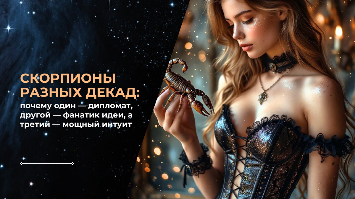Скорпионы разных декад: почему один — дипломат, другой — фанатик идеи, а третий — мощный интуит