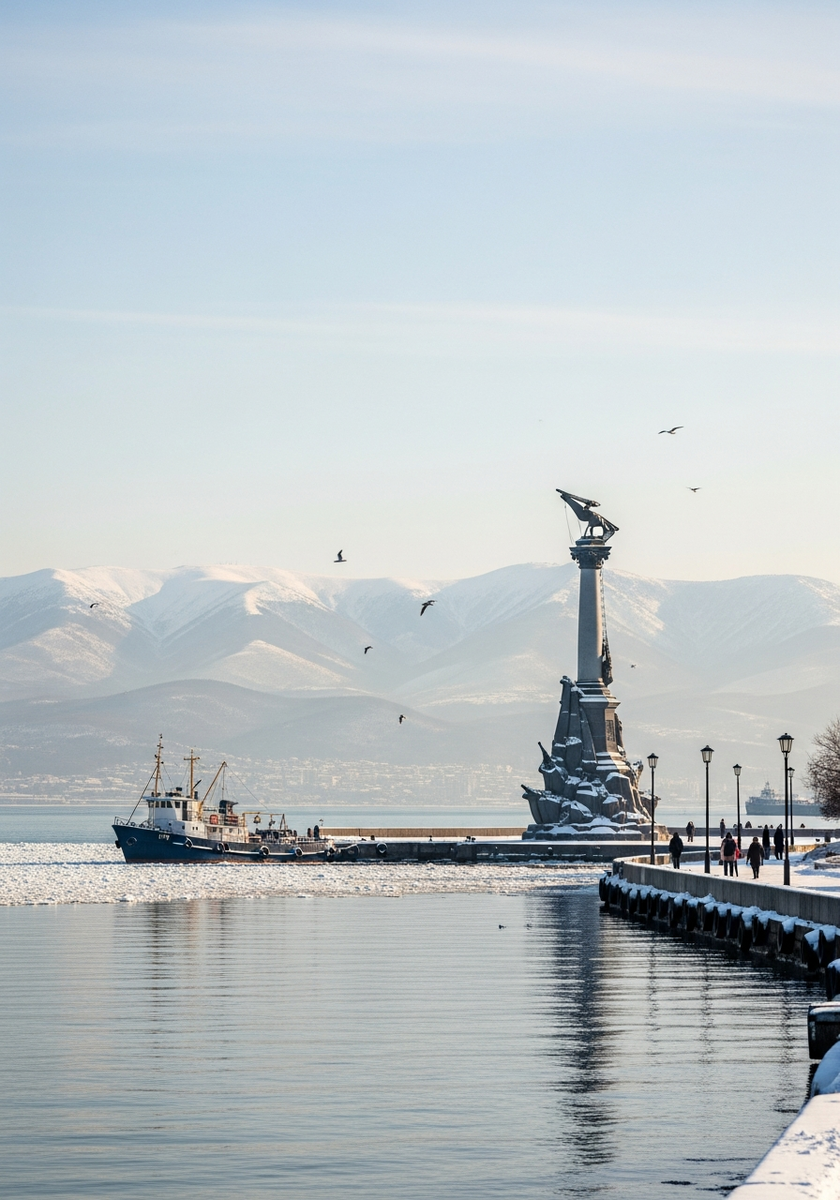 - Стоит ли ехать в Новороссийск зимой? Да, зимой город открывается с другой стороны — нет летних толп туристов, музеи работают в спокойном режиме, можно неспешно изучать достопримечательности и наслаждаться морскими пейзажами.