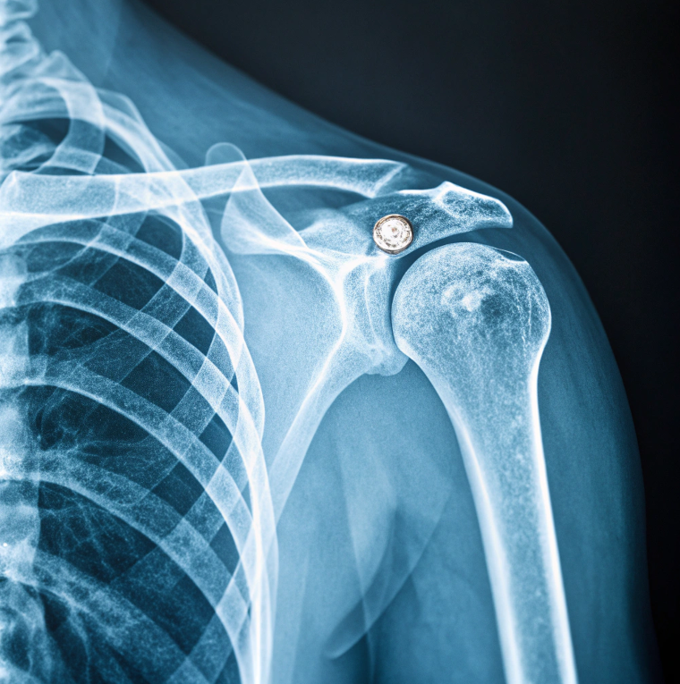 Через несколько недель восстановление шло по плану. Однако врач-рентгенолог, изучая снимки, заметил необычное включение в кости плеча. По форме и плотности оно напоминало металлический объект размером около нескольких миллиметров.