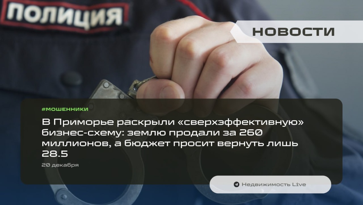 ⚡️ В Приморье раскрыли «сверхэффективную» бизнес-схему: землю продали за 260 миллионов, а бюджет просит вернуть лишь 28