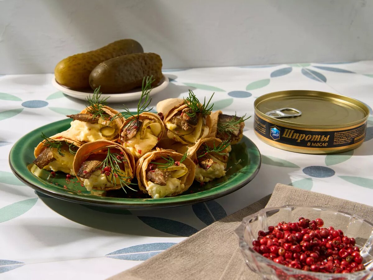 Закуска к празднику: хрустящие рожки из лаваша со шпротами