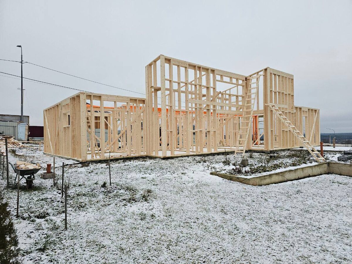 ! Приступили к реализации индивидуального проекта. 📐 Габариты дома: 18,00 × 10,70 м 📏 Общая площадь: 188 м² В проекте предусмотрено: ▫️ крыльцо 1,5 м² ▫️ терраса 7 м² ▫️ большая терраса 16 м² ▫️ оранжерея 17 м² 🌿 На текущем этапе мы собираем деревянные конструкции дома - формируется «скелет» будущего дома.