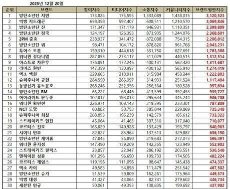 🍊 Рейтинг репутации индивидуального бренда среди бойз-групп за декабрь 2025 года: