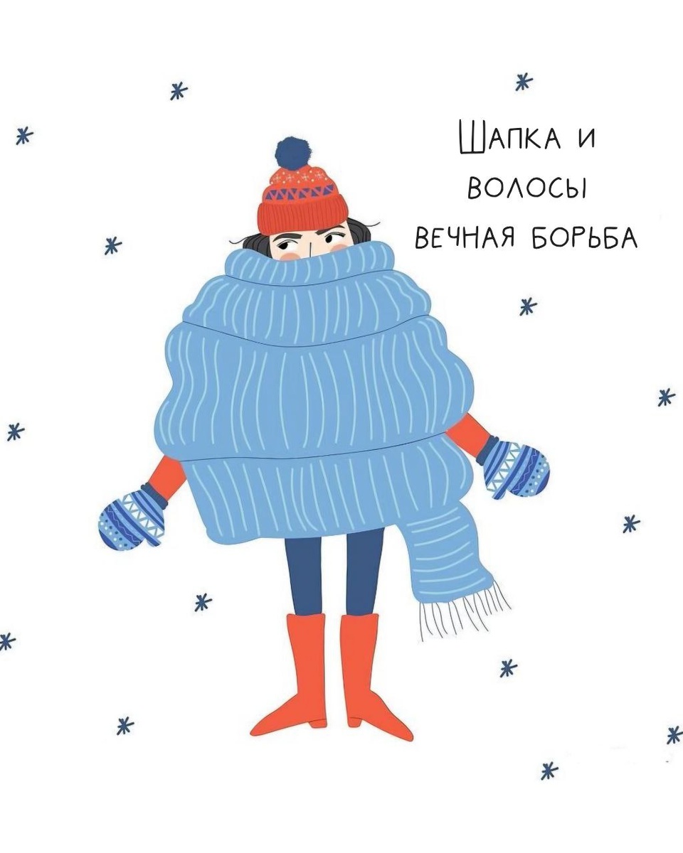Знакомая картина снова и снова: сняла шапку, и волосы встали дыбом, липнут к лицу и живут своей жизнью
