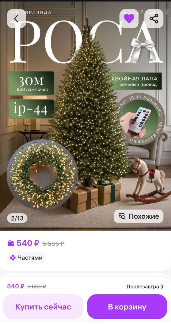 В этой публикации я покажу вам всю суть российского импортозамещения на очень простом бытовом и понятном каждому примере. Вот, говорят, у нас тут приближается Новый год, и пора наряжать елки. Следуя этой устоявшейся традиции, мы решили обновить свою и приобрели ей вот такую гирлянду типа "Роса -хвойная лапа" (кто в теме - поймет). Гирлянда очень уютная, изящная, современная, выглядит именно так как на картинке. Имеет пульт дистанционного управления с множеством режимов свечения и даже таймером. Вариант, содержащий 30 метров гирлянды и 900 светодиодов, обошелся всего в 540 рублей. Есть гораздо длиннее, есть короче - на любой вкус и размер. Вот ее описание из карточки товара, оно полностью соответствует действительности. Данная гирлянда, как несложно догадаться, произведена в Китае, и была приобретена по вот такой цене на известном российском маркетплейсе. Это не какая-то "распродажа" или акционная цена, а самая обыкновенная, текущая стоимость. Мне стало интересно: а есть ли вообще в при