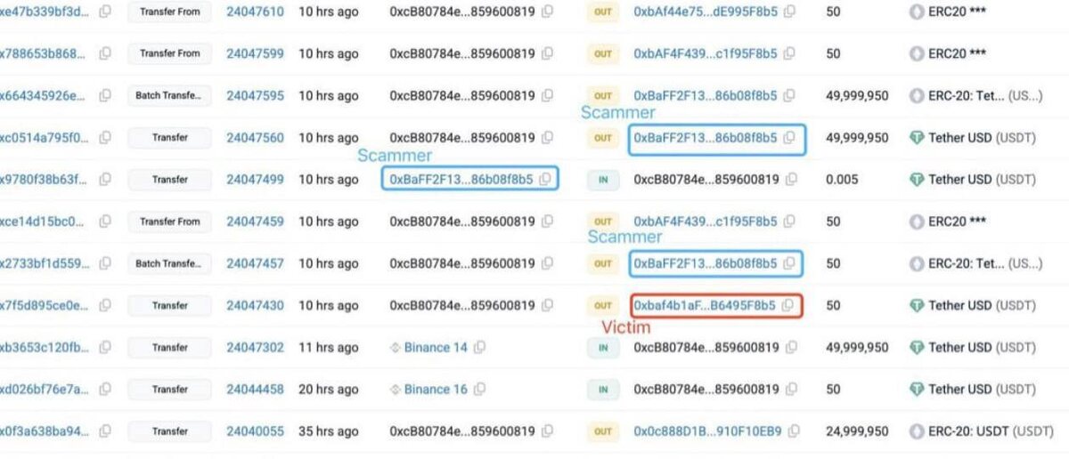 ΠΡΠΈΠΏΡΠΎΠΈΠ½Π²Π΅ΡΡΠΎΡ ΠΎΡΠΏΡΠ°Π²ΠΈΠ» $50 ΠΌΠ»Π½ Π½Π΅ Π½Π° ΡΠΎΡ ΠΊΠΎΡΠ΅Π»ΡΠΊ β ΠΌΠΎΡΠ΅Π½Π½ΠΈΠΊ ΡΠΎΠ·Π΄Π°Π» Π°Π΄ΡΠ΅Ρ Ρ ΡΠ΅ΠΌΠΈ ΠΆΠ΅ ΠΏΠ΅ΡΠ²ΡΠΌΠΈ ΠΈ ΠΏΠΎΡΠ»Π΅Π΄Π½ΠΈΠΌΠΈ ΡΠ΅ΡΡΡΡΠΌΡ ΡΠΈΠΌΠ²ΠΎΠ»Π°ΠΌΠΈ, ΠΏΠΎΠ΄ΠΌΠ΅Π½ΠΈΠ» Π΅Π³ΠΎ ΠΏΡΠΈ ΠΊΠΎΠΏΠΈΡΠΎΠ²Π°Π½ΠΈΠΈ, ΠΈ ΡΡΠ°Π½Π·Π°ΠΊΡΠΈΡ ΡΠΆΠ΅ Π½Π΅ Π²Π΅ΡΠ½ΡΡΡ. Π ΠΊΡΠΈΠΏΡΠ΅ ΠΎΡΠΈΠ±ΠΊΠ° Π² ΠΎΠ΄Π½Ρ Π±ΡΠΊΠ²Ρ ΠΌΠΎΠΆΠ΅Ρ ΡΡΠΎΠΈΡΡ ΠΊΠ°ΠΊ Π½Π΅Π±ΠΎΡΠΊΡΡΠ± β ΠΈ ΠΎΡΠΊΠ°ΡΠΈΡΡ Π΅Ρ Π½Π΅Π»ΡΠ·Ρ.