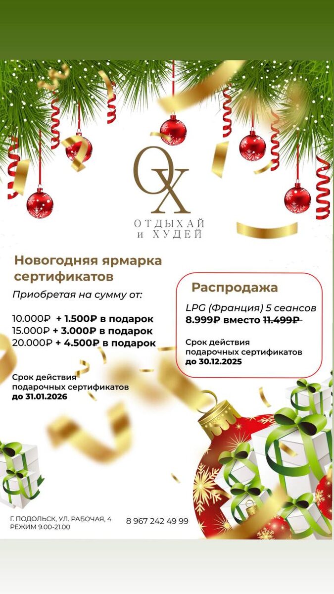 ✨🎄 Новогодняя ярмарка сертификатов в студии «Отдыхай и худей