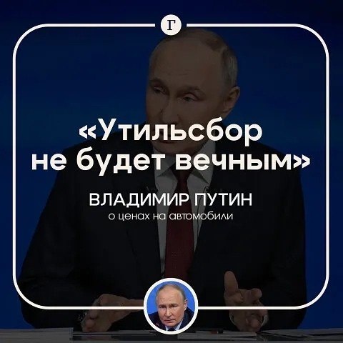 Президент заявил, что высокий уровень утильсбора не сохранится навсегда. Об этом он сообщил в ходе прямой линии, выразив надежду, что через некоторое время сбор будет уменьшаться, а у граждан начнёт восстанавливаться возможность выбора автомобилей. Глава государства отметил, что в первую очередь повышение утильсбора затрагивает обеспеченных россиян, которые предпочитают небюджетные автомобили мощностью от 160 лошадиных сил. «Надо прямо сказать: это связано с попыткой министерства финансов получить допдоход для технологического развития, но косвенно это поддерживает и отечественный автопром. <…> Конечно, я не могу вам не посоветовать выбрать что-то из отечественного автопрома. Надеюсь, что и эта мера будет не вечной, и выбор у наших граждан будет восстанавливаться или по мере роста доходов, или по мере сокращения фискальной нагрузки», — сказал Владимир Путин.