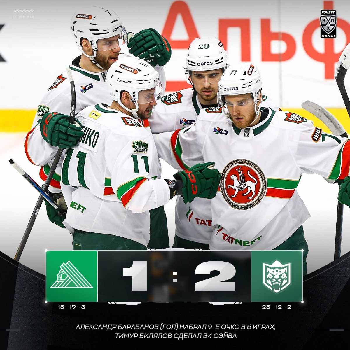 🟢 «Ак Барс» в 4-й раз в сезоне выиграл #ЗеленоеДерби!
