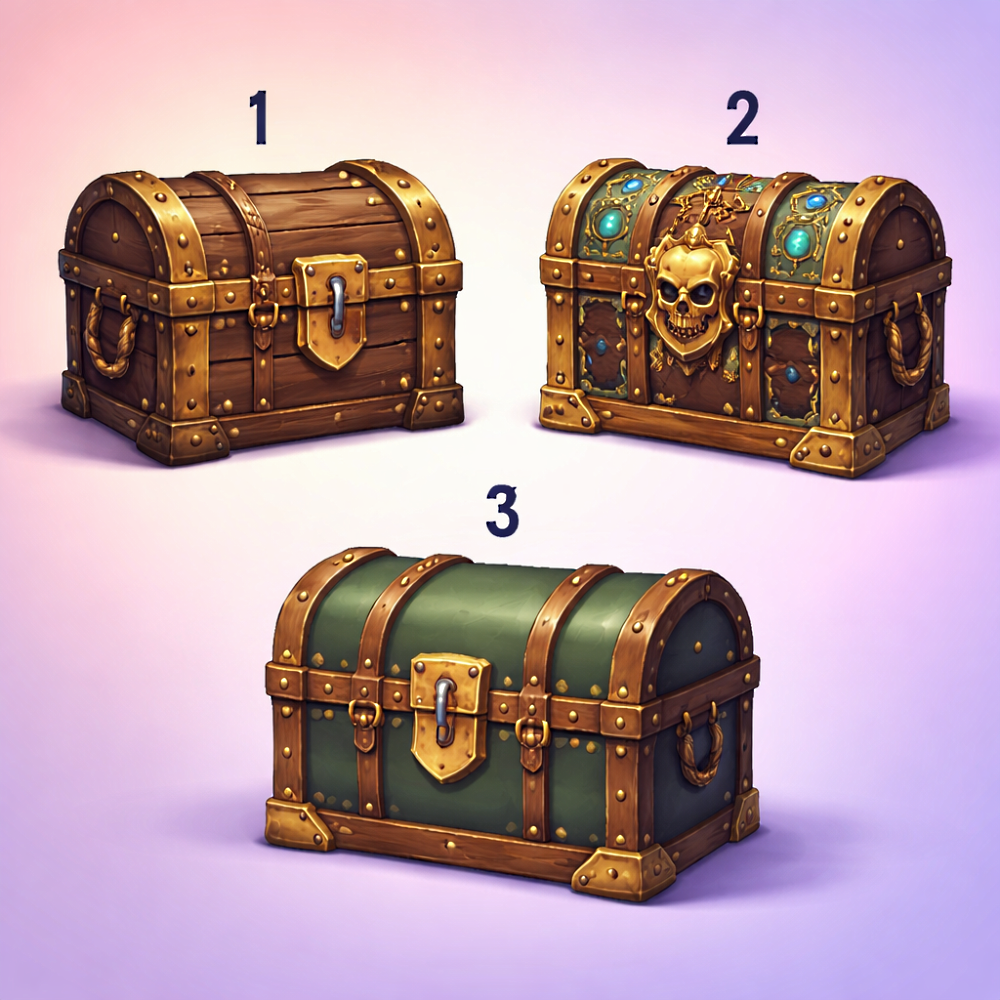 Здравствуйте, друзья! Мы часто думаем, что знаем себя на все сто процентов, но на самом деле в глубине души у каждого из нас есть скрытые желания, страхи и секреты, о которых мы даже не догадываемся. Иногда они проявляются в мелочах, в нашем поведении или в том, что нас привлекает. Сегодня мы предлагаем вам пройти простой тест, который поможет заглянуть внутрь своей души. Всё, что нужно — выбрать один из трёх сундучков на картинке. Выбирайте тот, который привлёк вас с первого взгляда. Сундук номер 1 Если ваш выбор пал на первый сундучок, это говорит о том, что вы человек, который ценит стабильность и порядок. Вы любите, когда всё предсказуемо, и стараетесь избегать неожиданных ситуаций. Внутри вас скрывается сильное желание безопасности и защиты. Вы иногда стесняетесь показывать свои эмоции и переживания окружающим, предпочитая держать всё в себе. В глубине души вы мечтаете о том, чтобы кто-то понял вас без слов и всегда поддерживал в трудные моменты. Этот выбор показывает, что вы цени
