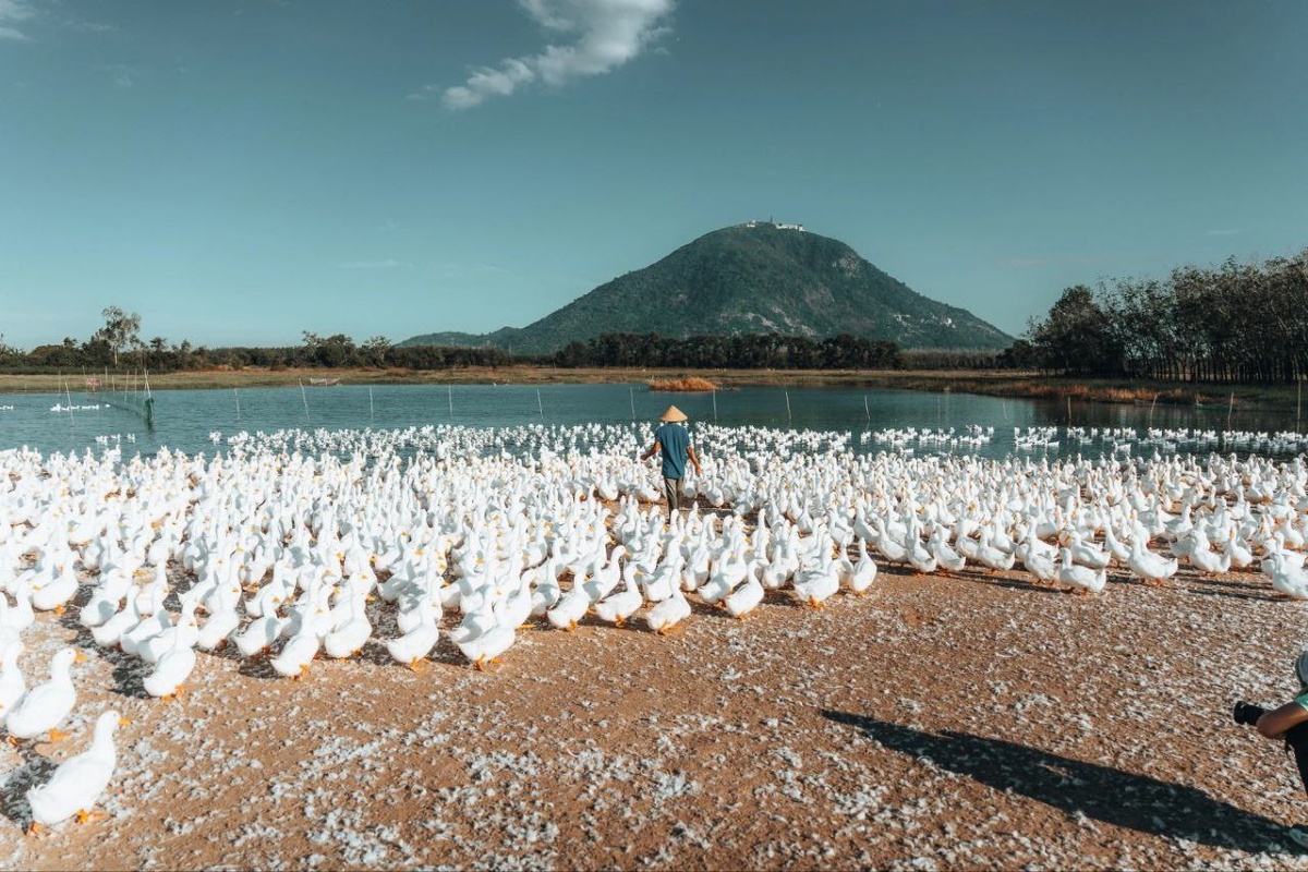 Стайка гусей на озере у подножия горы Баден ( Тэйнинь)